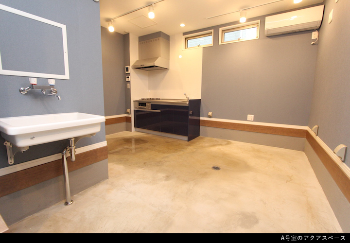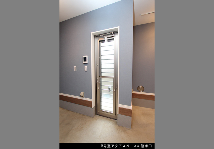 A号室は室内にシンクを設けています。B号室は勝手口を設け、そこから出てすぐの場所に洗い場を設置しました。
