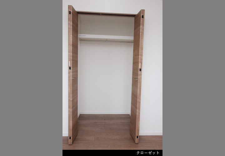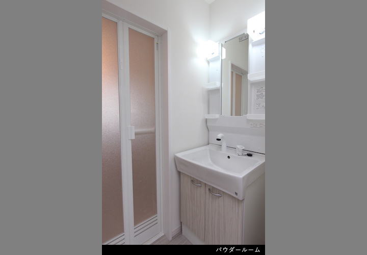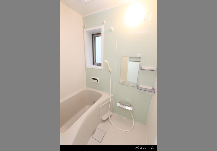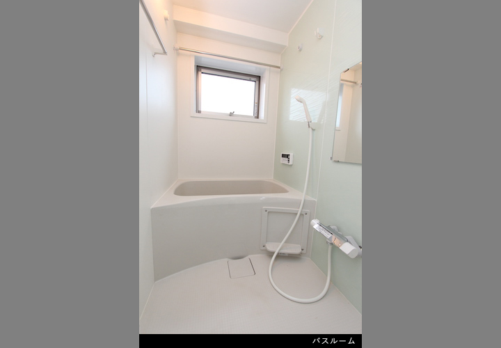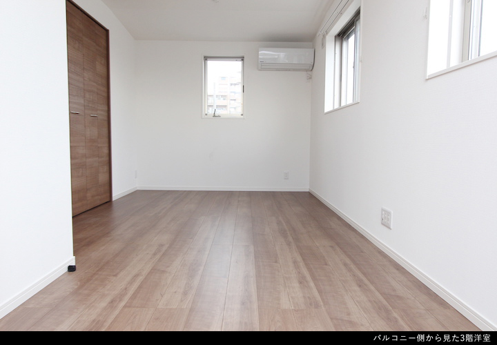 3階は8.45畳大の洋室です。クローゼットが2箇所あり、隣接したパウダールームの奥がバスルームになっています。バスルームには追い焚き機能がついています。