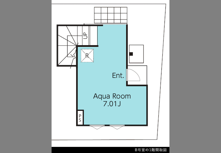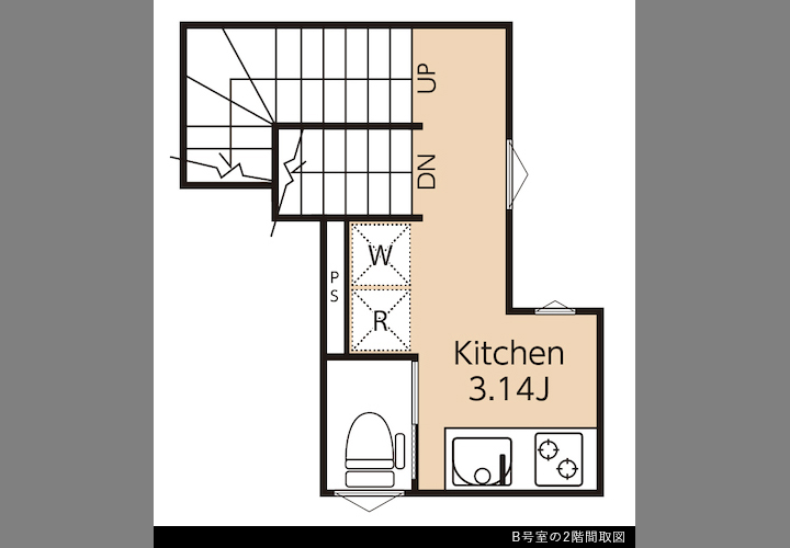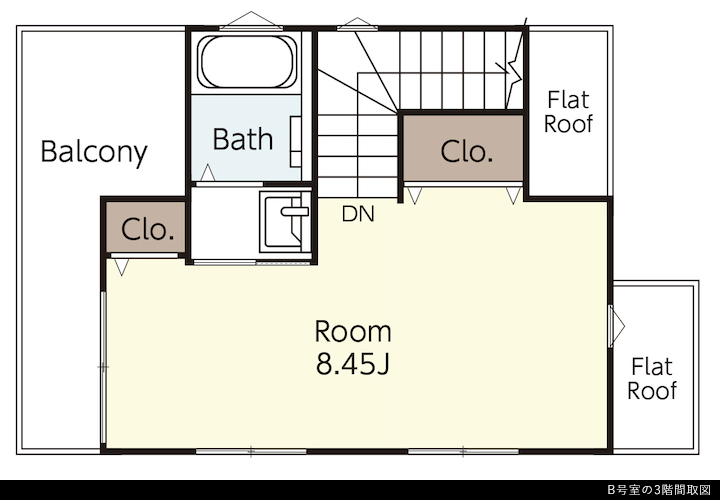 B号室は47.33㎡の2K。3階建て(トリプレット)となっていて、こちらはご夫婦やカップル、またはマニア同志のルームシェアを想定してつくりました。