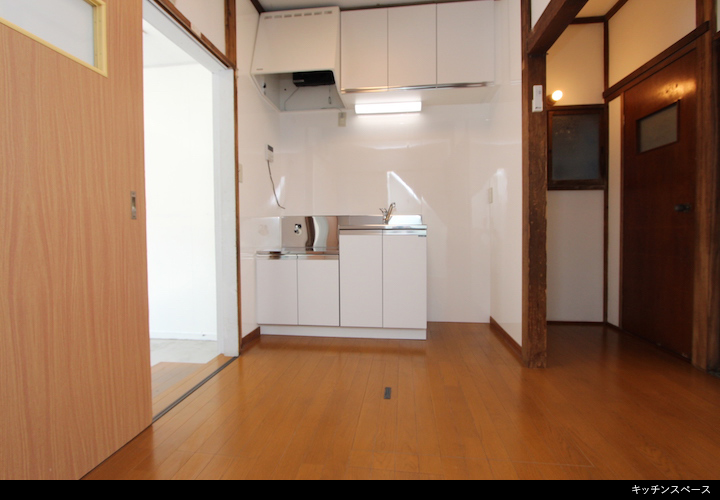 キッチンは小さめで、ガスコンロはご自身で用意いただきます。