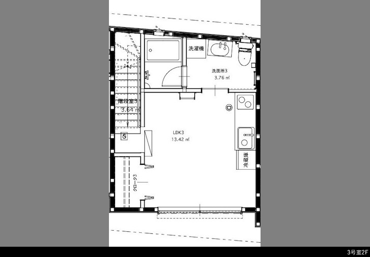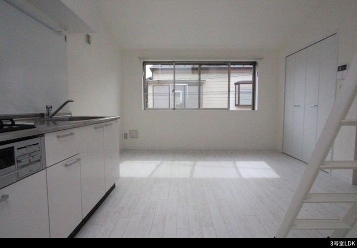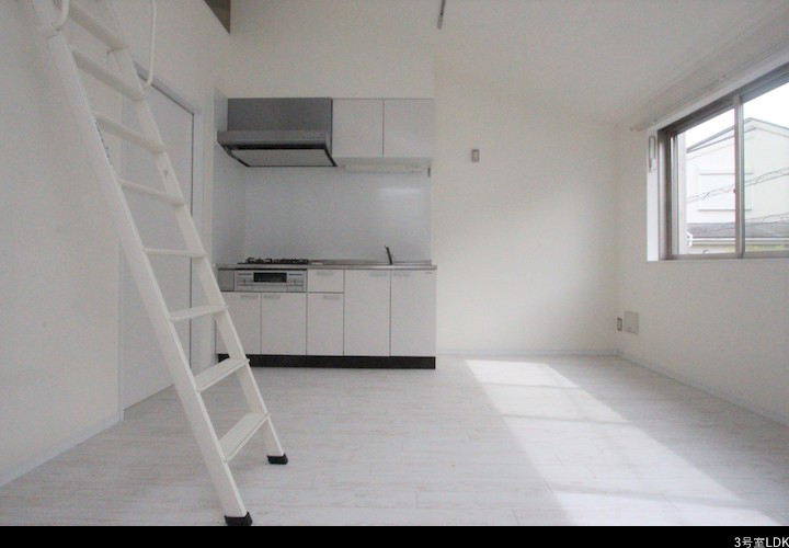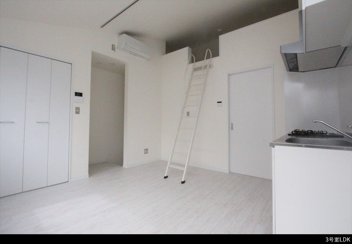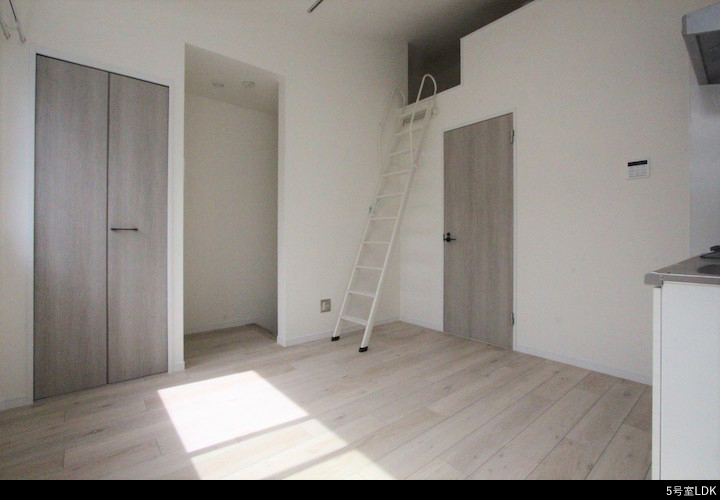 続いて、部屋全体もご紹介しておきましょう。 「クリエイターズ五軒長屋」は3号室、5号室ともに1Fはアトリエ、2FはLDKになっていて、ロフトもついています。