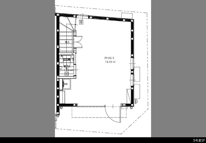 5号室も当初は土間でしたが、退去された美術作家の方が寒さ対策としてご自分でフローリングを張られました。島田さんいわく「こちらも汚すことはあまり気にしないでいただいて大丈夫です」。ものづくりをされる方にはありがたい話ですね!