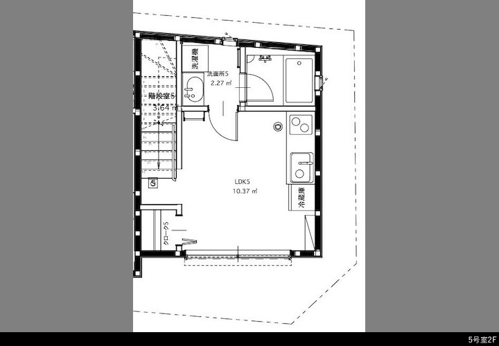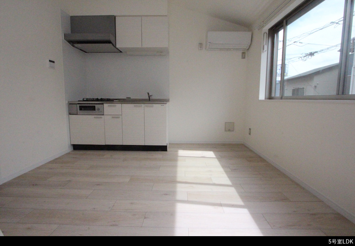 5号室は3号室にくらべ、一回り小さく、2Fにトイレがない点が違っています。ただし角部屋ですし、小さい分、家賃(※後でご紹介します)も安いので、人気は分かれるかもしれませんね。