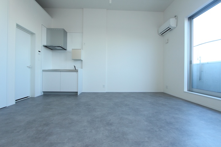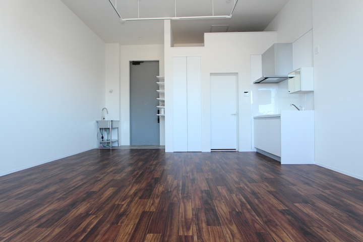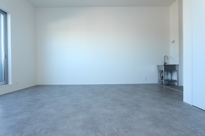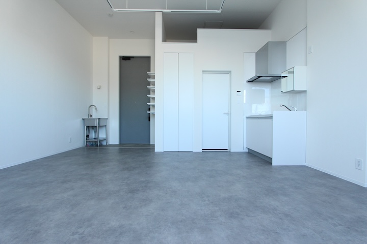 専有面積は30.17㎡で、キッチン等の水回りをコンパクトにし、アトリエ空間をできる限り広くするよう設計しています。