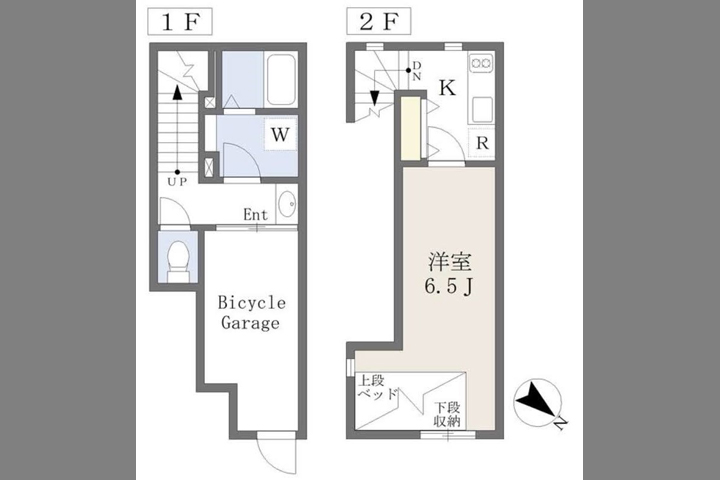 ガレージ付きのお部屋はすべて2階建ての構造ですが、タイプは2つに分かれています。