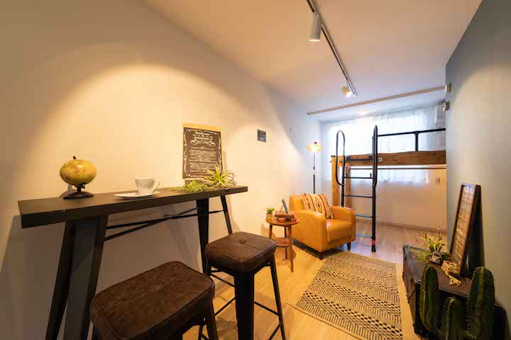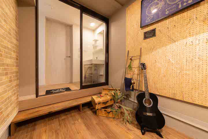 - 専有部設備:ガレージ / ガレージ用ポータブルクーラー / キッチン(2口ガスコンロ) / バスルーム(追焚き機能・乾燥機能付き) / シャワートイレ / 独立洗面台 / 室内洗濯機置場 / TVモニタホン / インターネット・Wi-Fi 無料 / 暗証番号プッシュ式キー / エアコン / ロフトベッド(2,6,8号室のみ)