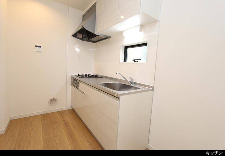 キッチンはワイドが1800mmと広め。ガスコンロも2口あり、グリルもついているので、料理を楽しむには十分です。