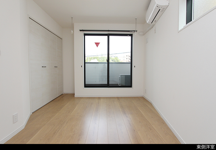 3階には寝室が2室あります。それぞれの部屋にクローゼットがついているため、「ワク賃040」は美術家の友人とのルームシェアにもとても向いていると思います。アトリエをシェアし、広いリビングで一緒にゆったり寛ぎ、自分の部屋で静かに過ごす。そんな生活も素敵ですね◎