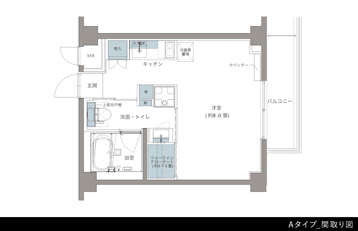 Bタイプは南北に細長く壁面が多く取れ、家具のレイアウトがしやすいタイプです。