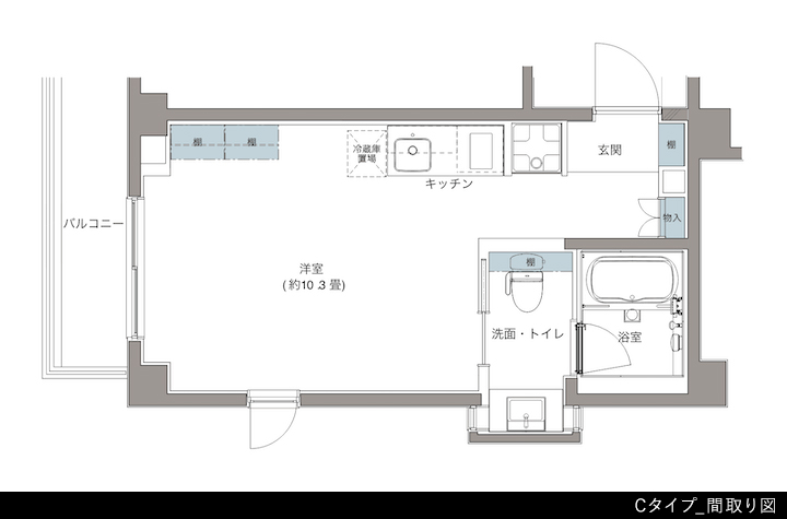 Cタイプはシンプルでミニマムな空間です。機能的で「今を楽しむ」一人暮らしを謳歌するにはうってつけ。