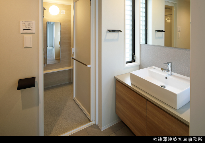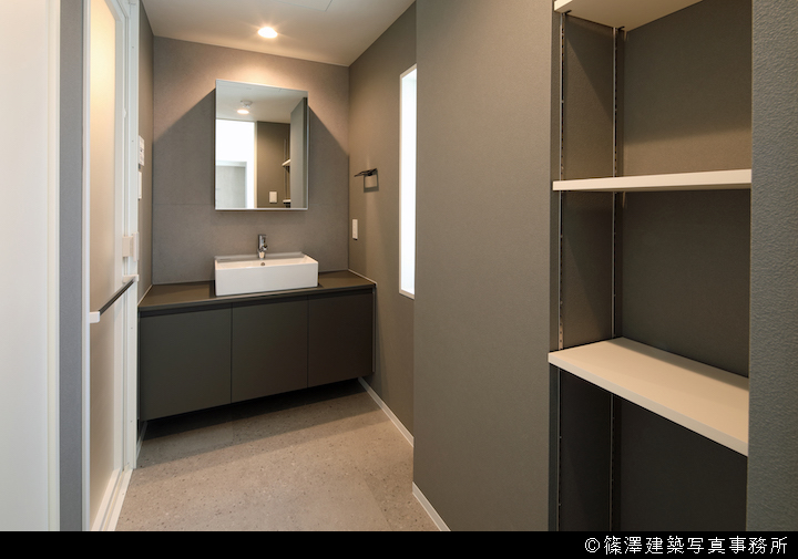 持ち物・衣類の整理がしやすいウォークインクローゼットが付いていて、水廻りがぐるぐると回遊できるのが特徴。