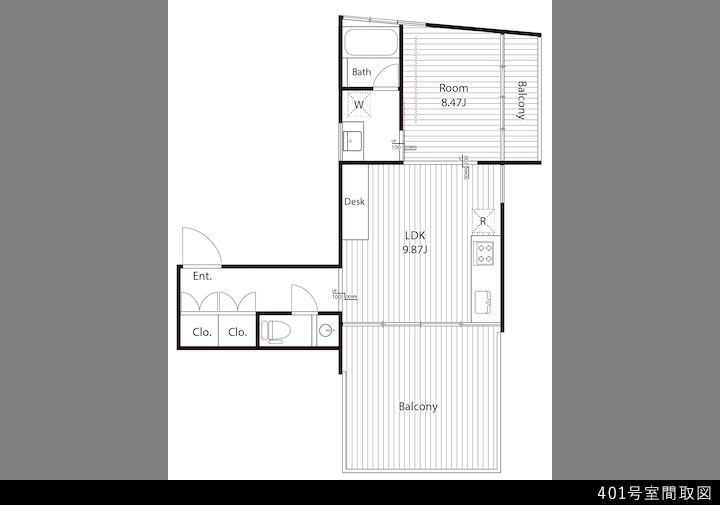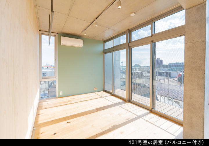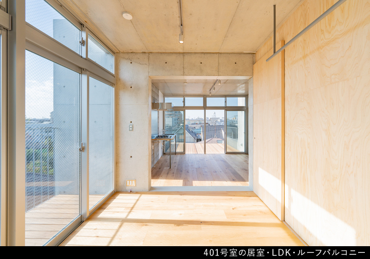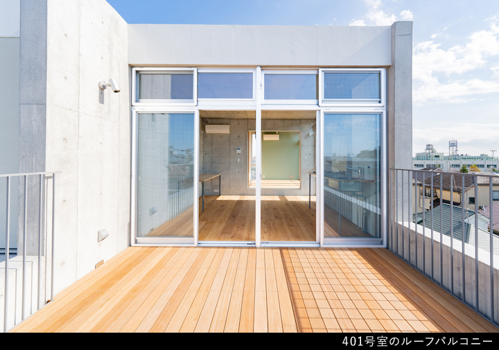 まずは14㎡のルーフバルコニーがついた最上階の401号室から。