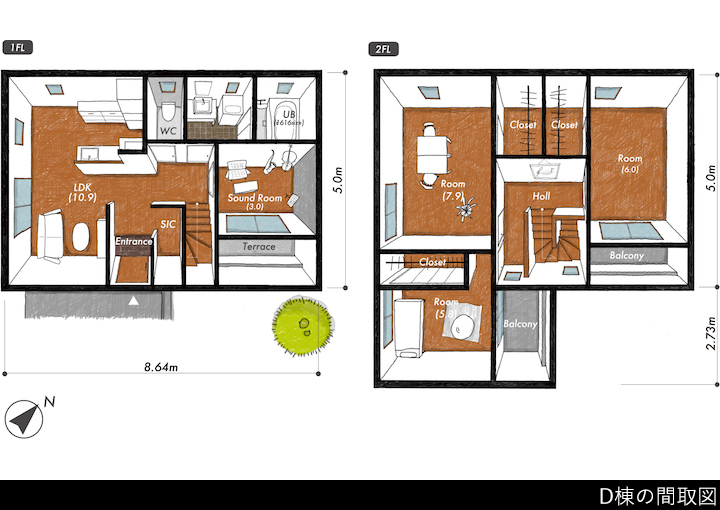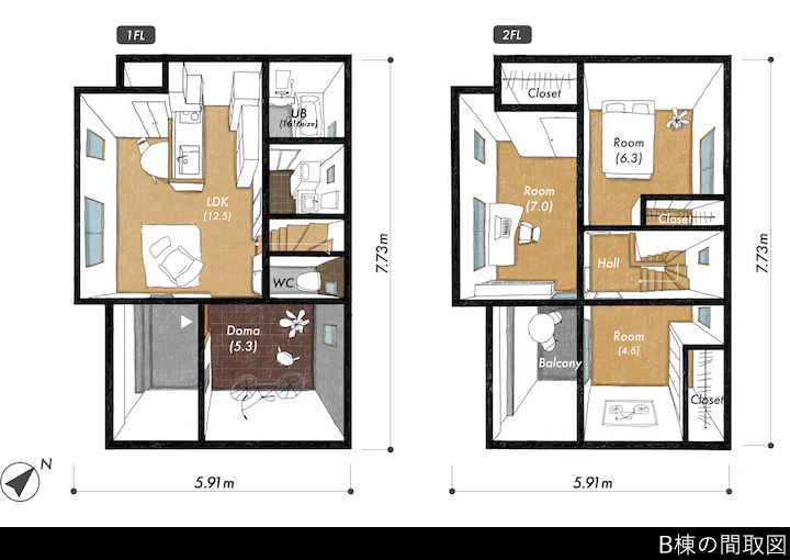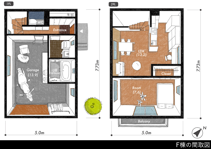6つの住戸のテーマ(コンセプト)は、車・バイク好きが暮らす「ガレージハウス」大きな土間がありアウトドア感覚や愛犬との暮らしを楽しむ「ドマハウス」本格防音室で楽器の演奏や、ホームシアターを楽しむ「サウンドハウス」の3つに分かれていて、自分の趣味にあった部屋をご選択いただけます。