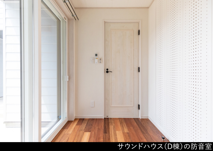 遮音性能に優れた防音ルームを設けたサウンドハウスは、誰に気兼ねすることなく自由に音楽を楽しむことができる住まいです。